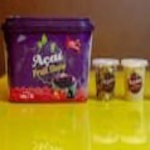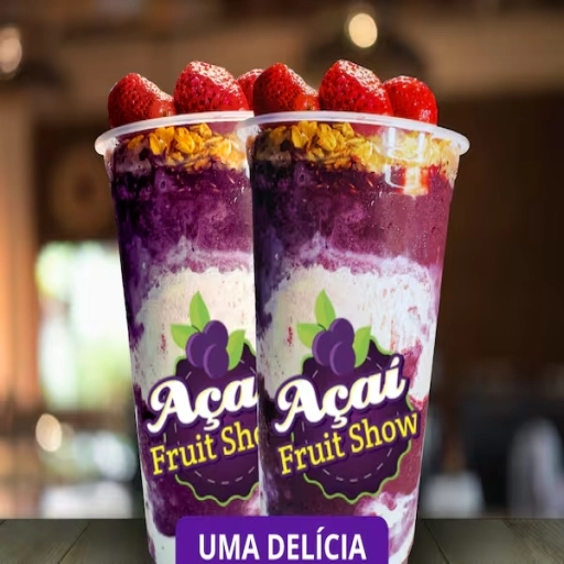 Delicioso açaí 2 potes de 300 ml com Açai Natural + Creme de maracujá + granola, morango e leite condensado.